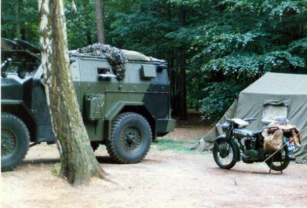 On tour at the Arnhem celebrations in Holland. My Norton is parked behind (I carried it in the back of the Pig).