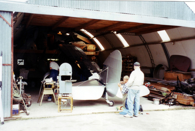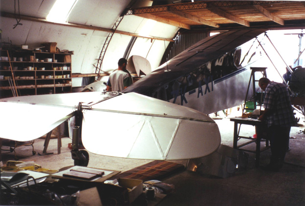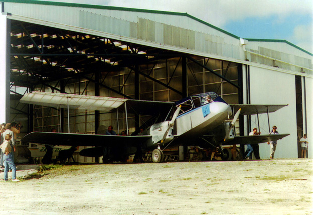 The final fitting of the tailplane to a 'DH Dragon'. |