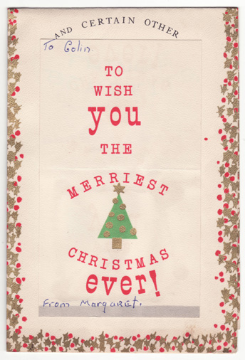 of a Xmas card that she gave me in December 1964 that I have