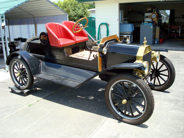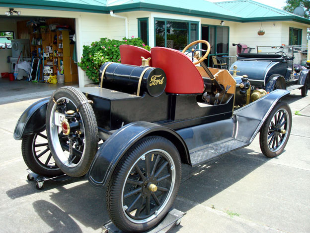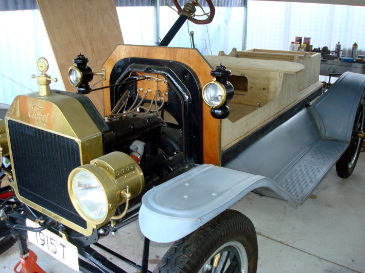 The remains of the Ford Model T were dug up out of a creek where it had been dumped more than 50 years ago. I did a total build by both making parts and purchasing parts from around the world. The vehicle is now in a museum in Christchurch. NZ.